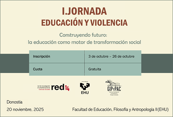 2025eko azaroaren 20an, EHUko Hezkuntza, Filosofia eta Antropologia Fakultatean (HEFA II), HEZKUNTZA ETA INDARKERIA: irakaslegoaren formakuntzako esperientziak eta erronkak izeneko lehen jardunaldia egingo da. Gipuzkoako Campuseko laguntzarekin antolatutako ekimen honek gai eztabaidagarrien irakaskuntzari, memoria demokratikoari eta hezkuntzak indarkeriazko testuinguruetan duen paperari buruzko hausnarketa eta elkarrizketarako gunea sortzea du helburu. Hainbat unibertsitatetako profesionalek partekatutako hitzaldi, elkarrizketa eta esperientzien bidez, jardunaldiak irakasleen prestakuntza aberastu eta giza eskubideekiko eta bizikidetzarekiko begirada kritiko eta konprometitua sustatu nahi du.